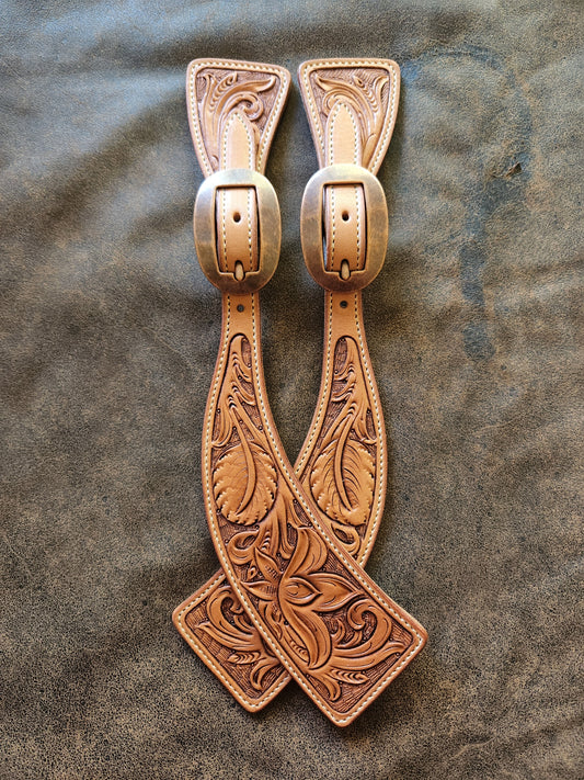 Sold outFloral Tooled Square End Spur Straps